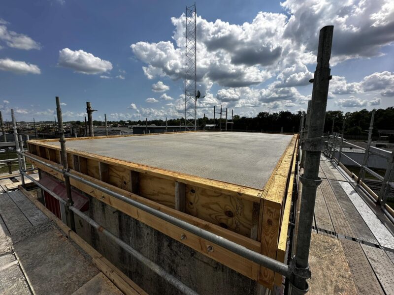 The result: K&H successfully removed the old roof (took pieces down by high lift) and poured the new roof via concrete pump.